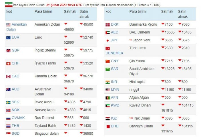 İran’da 1 ABD doları, ocak ayının başında 41 bin tümen civarında süreç görüyordu. Ülkede özgür döviz piyasasını izleyen “bonbast.com”a nazaran, hür piyasada doların satış kuru 50 bin 100 tümene ulaşarak birinci kere ruhsal eşik sayılan 50 bin tümeni aştı.