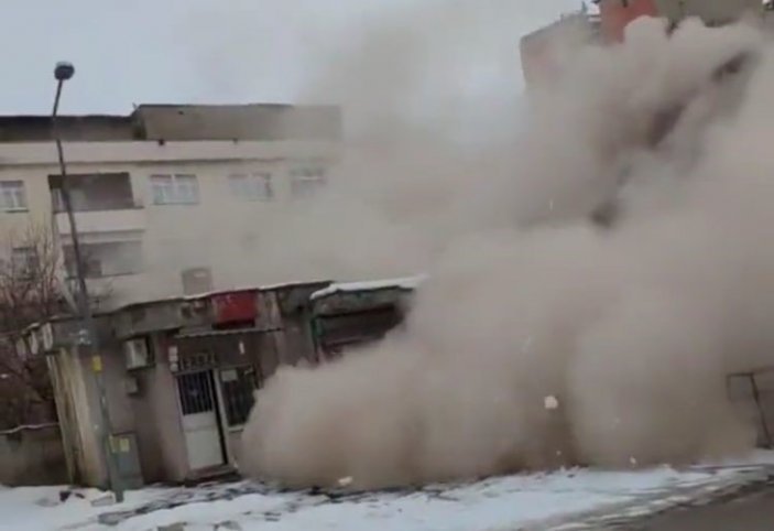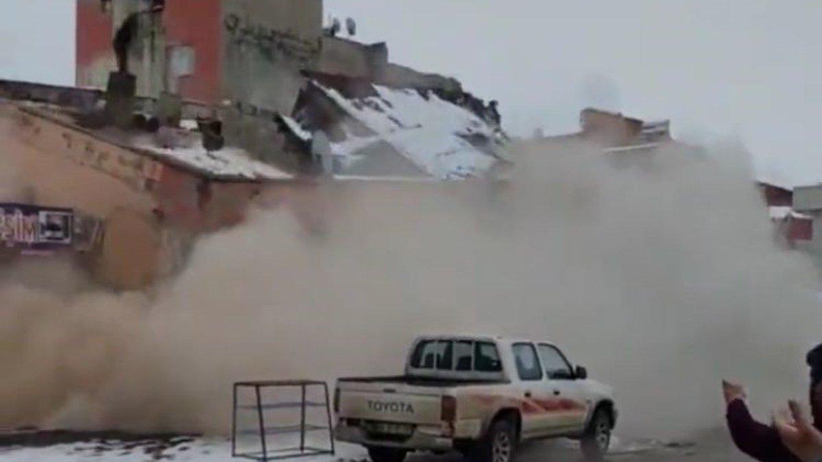 Görüntülerde sarsıntıyla birlikte yaşanan panik, çöken bir bina ile yıkılan diğer binaların toz bulutları yansıdı.